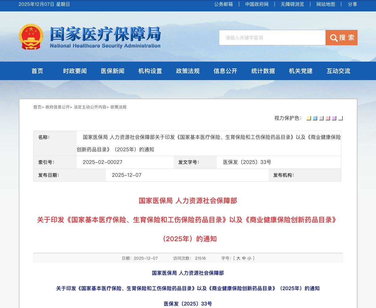 12月7日上午,2025年国家医保药品目录及首版商保创新药目录在广州发布。2025年国家医保药品目录成功新增114种药品,有50种是一类创新药,总体成功率88%,较2024年的76%明显提高。